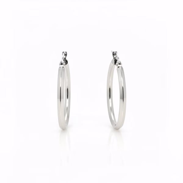 Expertly handcrafted in 10K white gold, these hoop earrings feature a refined knife edge profile that brings modern geometry to a classic silhouette. The sharp, angular contours catch and reflect light, creating a dynamic shimmer with every movement. Sleek and lightweight, these hoops are comfortable enough for everyday wear while still making a statement of understated luxury. Their minimalist, sculptural look pairs effortlessly with both casual and formal ensembles. Free jewellery cleaning available. Designed and handmade in Vancouver, BC, Canada.