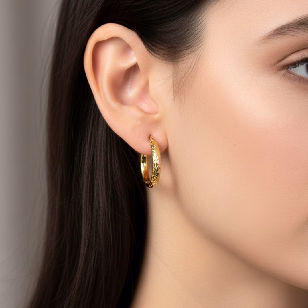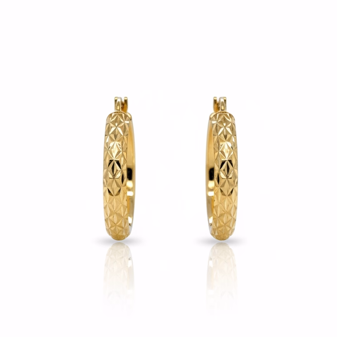 • Style: Diamond cut hoop earrings