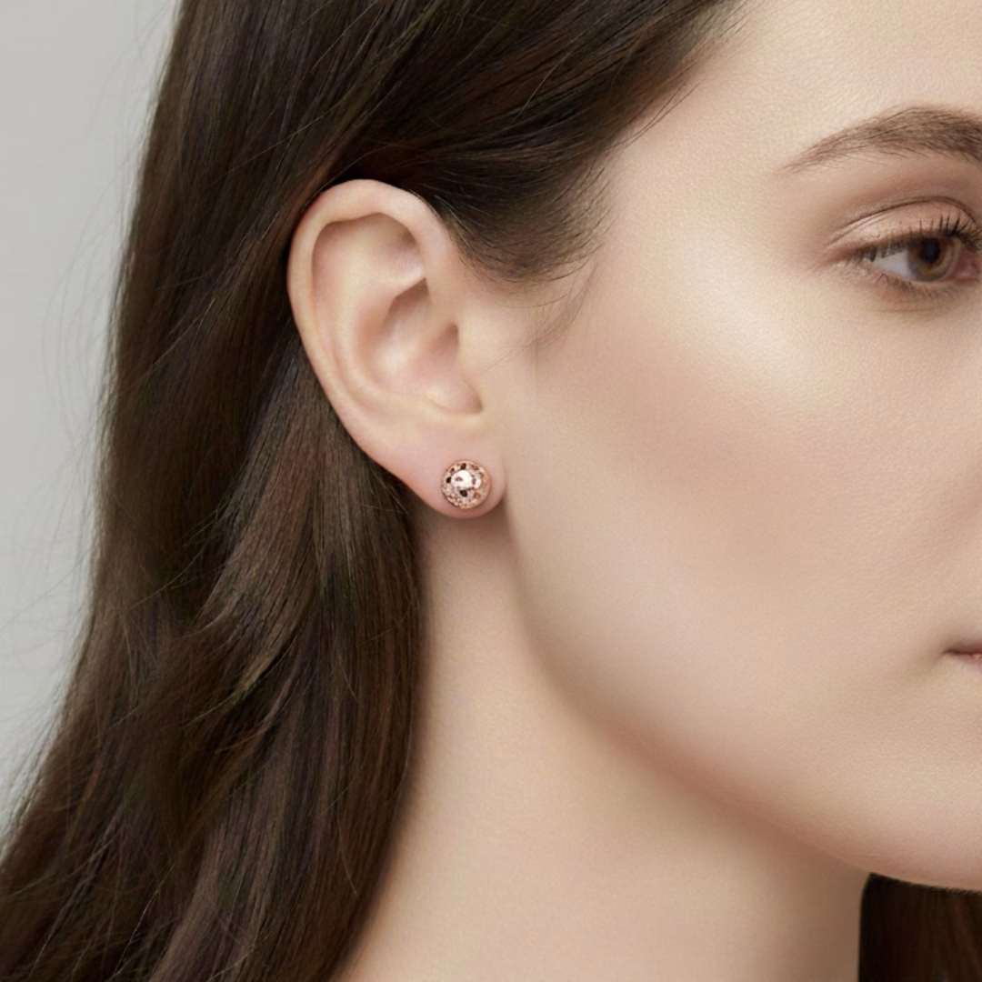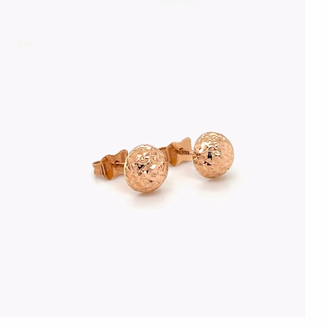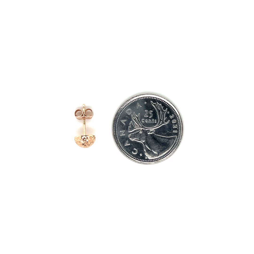 14K Rose Gold Half Ball Diamond Cut Patterned Stud Earrings