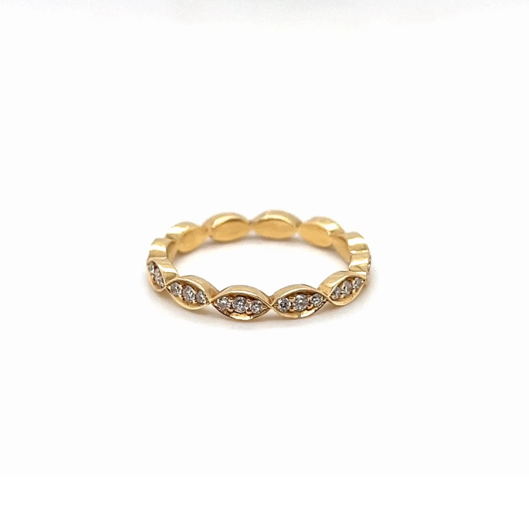 18K Yellow Gold Diamond Scalloped Design Eternity Band