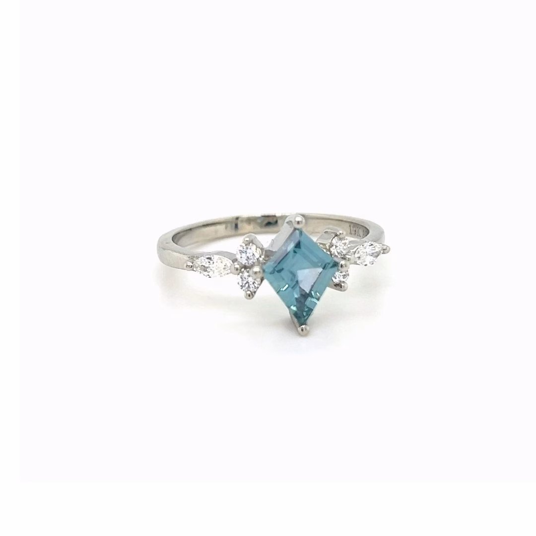 - Centre Stone: Montana blue sapphire (0.88 ct)
